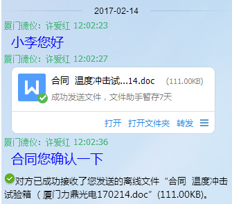 接近中午,一个熟悉的电话联系我,一接听,才知道是厦门力鼎光电的小李,这可是一个老客户呀,厦门力鼎光电从2014年就与厦门德仪公司合作过一台1个方立 -40~150度的高低温交变湿热试验箱、2016年又在厦门德仪设备订购过一台氙灯耐候老化试验箱,2017年春节前订了一台DEY-60的盐雾试验箱、今天,厦门力鼎光电的技术部李先生说:春节前确认的二箱式的高低温冲击试验箱已经确认好,公司现在确定要购买这台二箱式温度冲击试验箱,现在让我们把这台二箱式高低温冲击试验箱合同做过去。